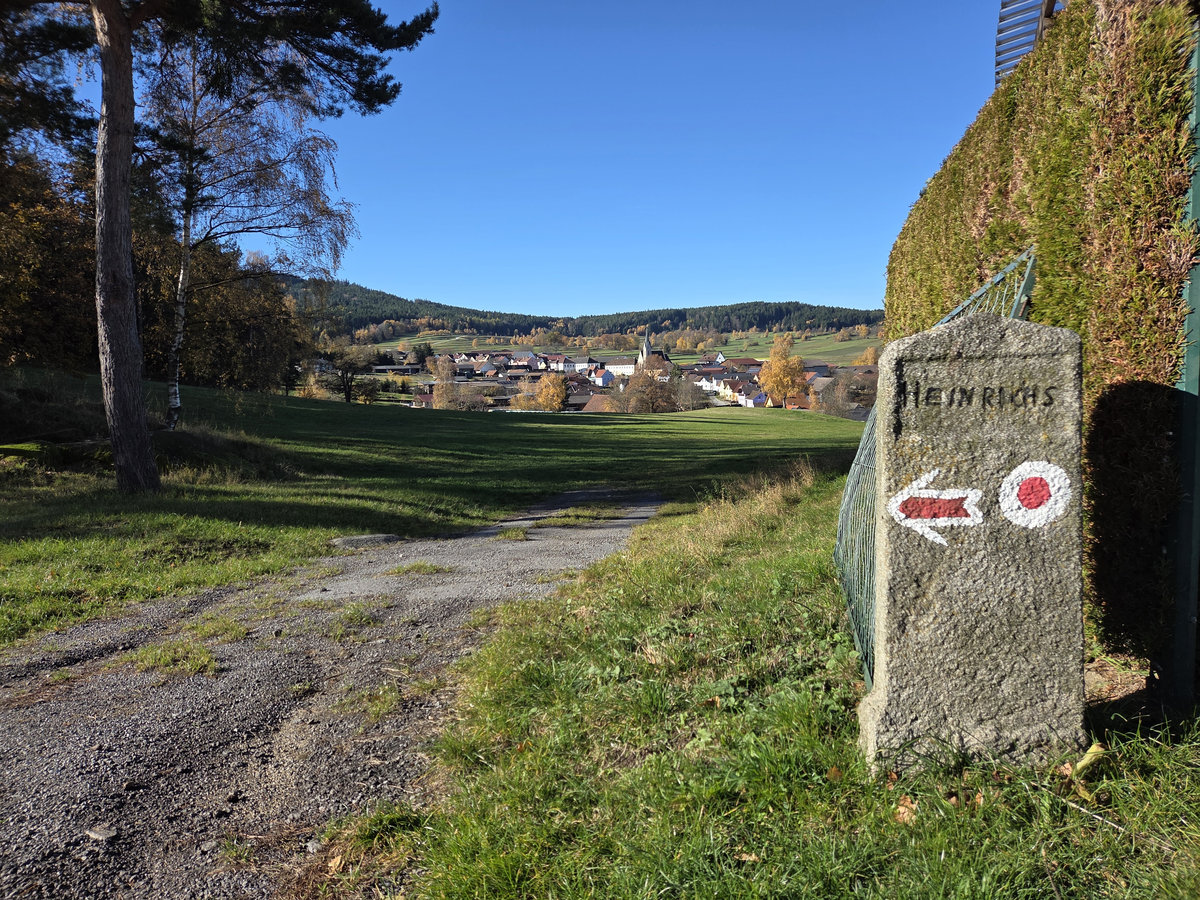 Je čas se pohnout. Přes vyhlídku na obec Heinrichs bei Weitra a stále po Erlebnisweg pokračuji okolo vrcholku Trialsteine k přechodu hlavní silnice L71. Za touto silnicí mě čeká výstup. V hlavě mi bleskne trhák od Plešného jezera na Plechý, ale obava je lichá. Je to tady sice do kopce, ale žádné drama se nekoná. Potkaných lidí: 0.