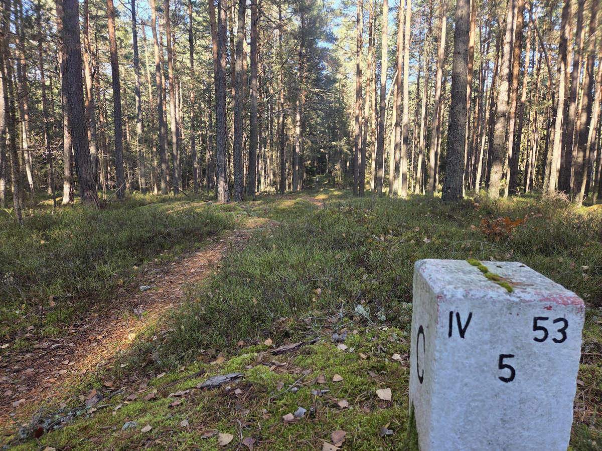 Míjím jeden hraniční patník za druhým a pokračuji úzkou, vyšlapanou cestičkou, která vede přímo po čáře. Všímám si četných pozůstatků minulého režimu - zbytky plotu, časem zapomenuté zákopy a navíc velmi hustý a tmavý les ve mně nevyvolávají příjemné pocity. Teoretizuji nad tím, co vše se zde kdysi odehrávalo a kolik lidí nemohlo žít svůj život tak, jak by si přáli. Možná si už dnes ani neuvědomujeme, jaké máme štěstí a zároveň i to, jak je vrtkavé. Necítím se zde dobře, ale nejdu stezkou poprvé. Věděl jsem dopředu, jaké pocity zdejší místa ve mně vyvolávají a zvolil jsem tuto neoficiální část trasy záměrně. Jako vzpomínku. Jako očistu.